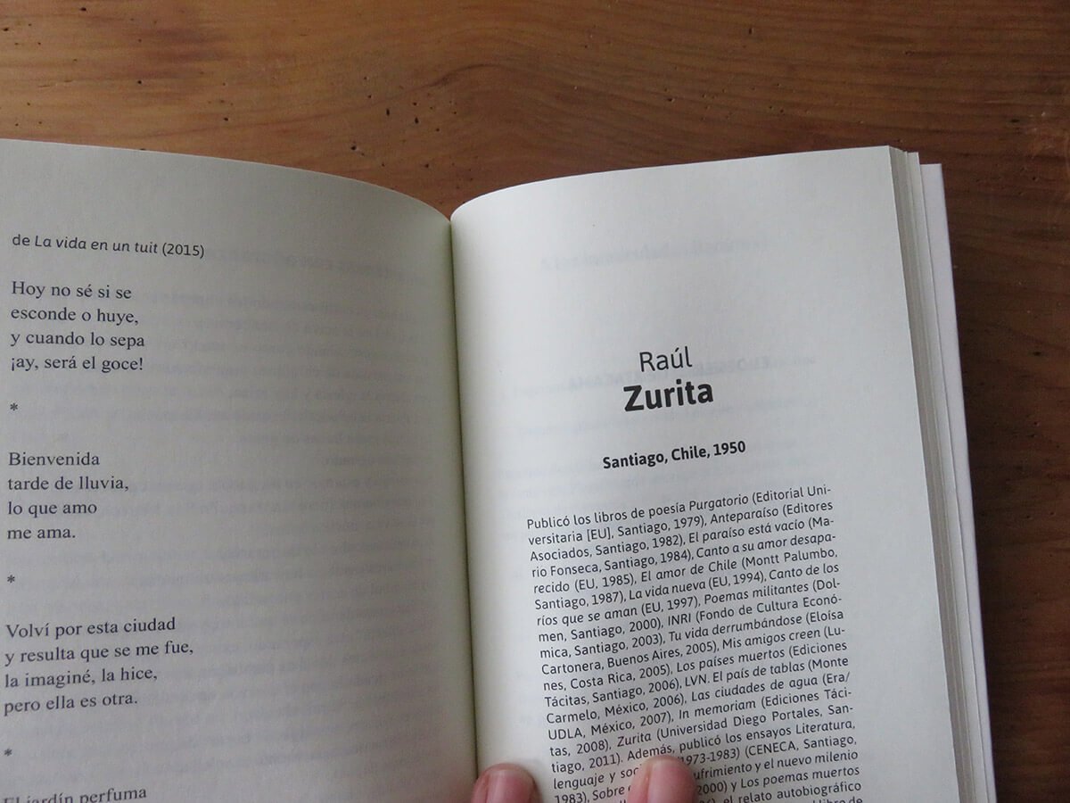 A. Morales Cruz, Antonio Cisneros, Carlos Germán Belli, Carmen Ollé, Carola Brantome, Circe Maia, Edwin Madrid, Elder Silva, Elvira Hernández, Fabio Morábito, Gonzalo Millán, Hugo Padeletti, Humberto Ak’Abal, Igor Barreto, Joaquín Morales, Joaquín O. Giannuzzi, José Ángel Cuevas, José Kozer, María Auxiliadora Álvarez, Marilyn Contardi, Marosa Di Giorgio, Raúl Zurita, Roberto Appratto, Teresa Calderón, Víctor Gaviria