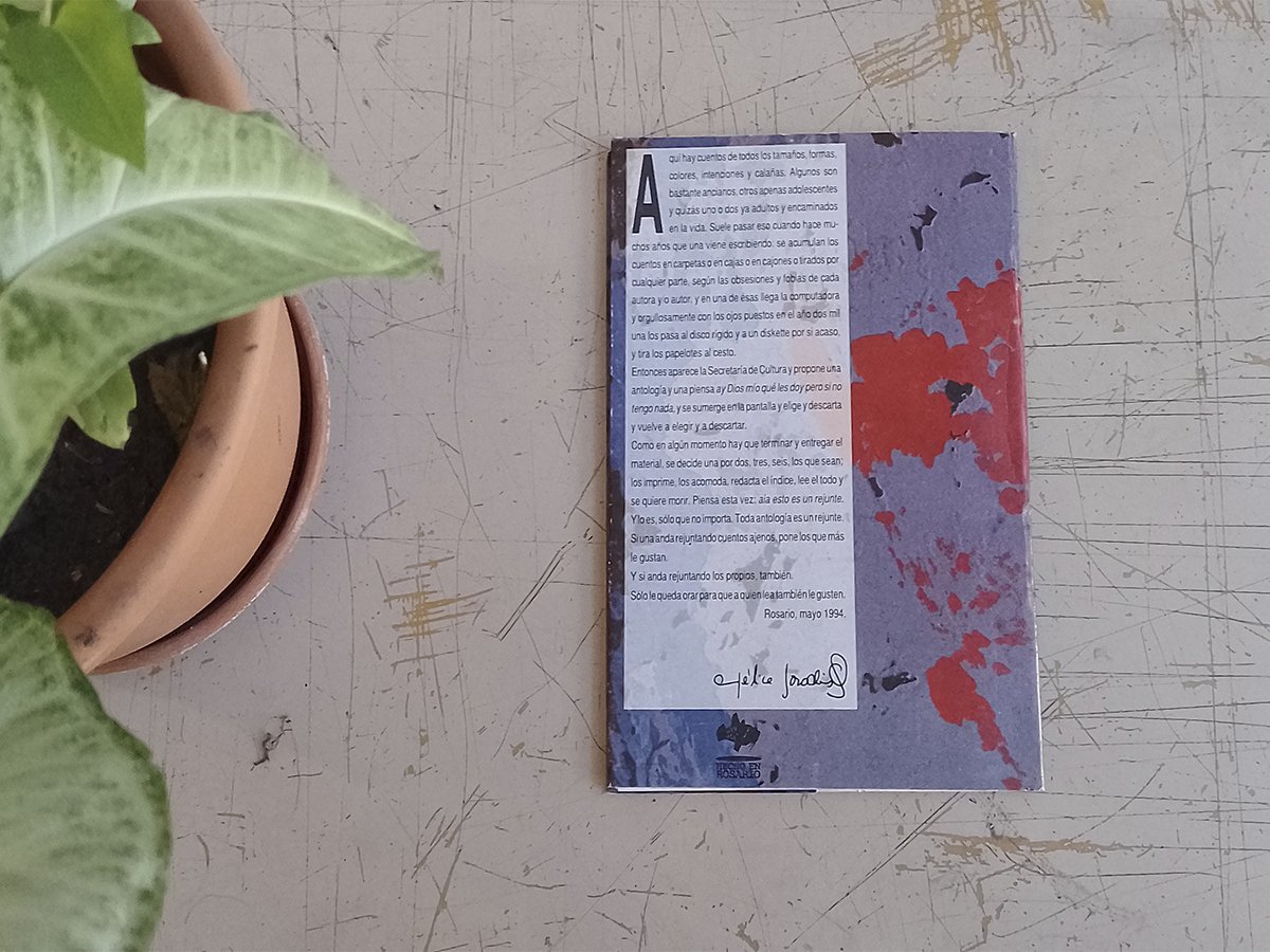 Aquí hay cuentos de todos los tamaños, formas, colores, intenciones y calañas. Algunos son bastante ancianos, otros apenas adolescentes y quizás uno o dos ya adultos y encaminados en la vida. Suele pasar eso cuando hace muchos años que una viene escribiendo: se acumulan los cuentos en carpetas o en cajas o en cajones o tirados por cualquier parte, según las obsesiones y fobias de cada autora y/o autor, y en una de ésas llega la computadora y orgullosamente con los ojos puestos en el año dos mil una los pasa al disco rígido y a un diskette por si acaso, y tira los papelotes al cesto.