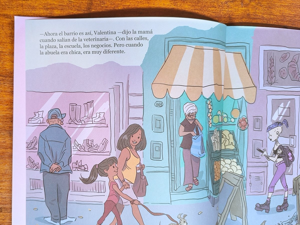 "Ahora el barrio es así, dijo la mamá, con las calles, la plaza, la escuela, los negocios, pero cuando la abuela era chica era todo muy diferente..." Valentina y su mamá recorren las calles de Rosario y se preguntan cómo serían esos mismos lugares hace 300 años. Con ilustraciones de Esteban Tolj.