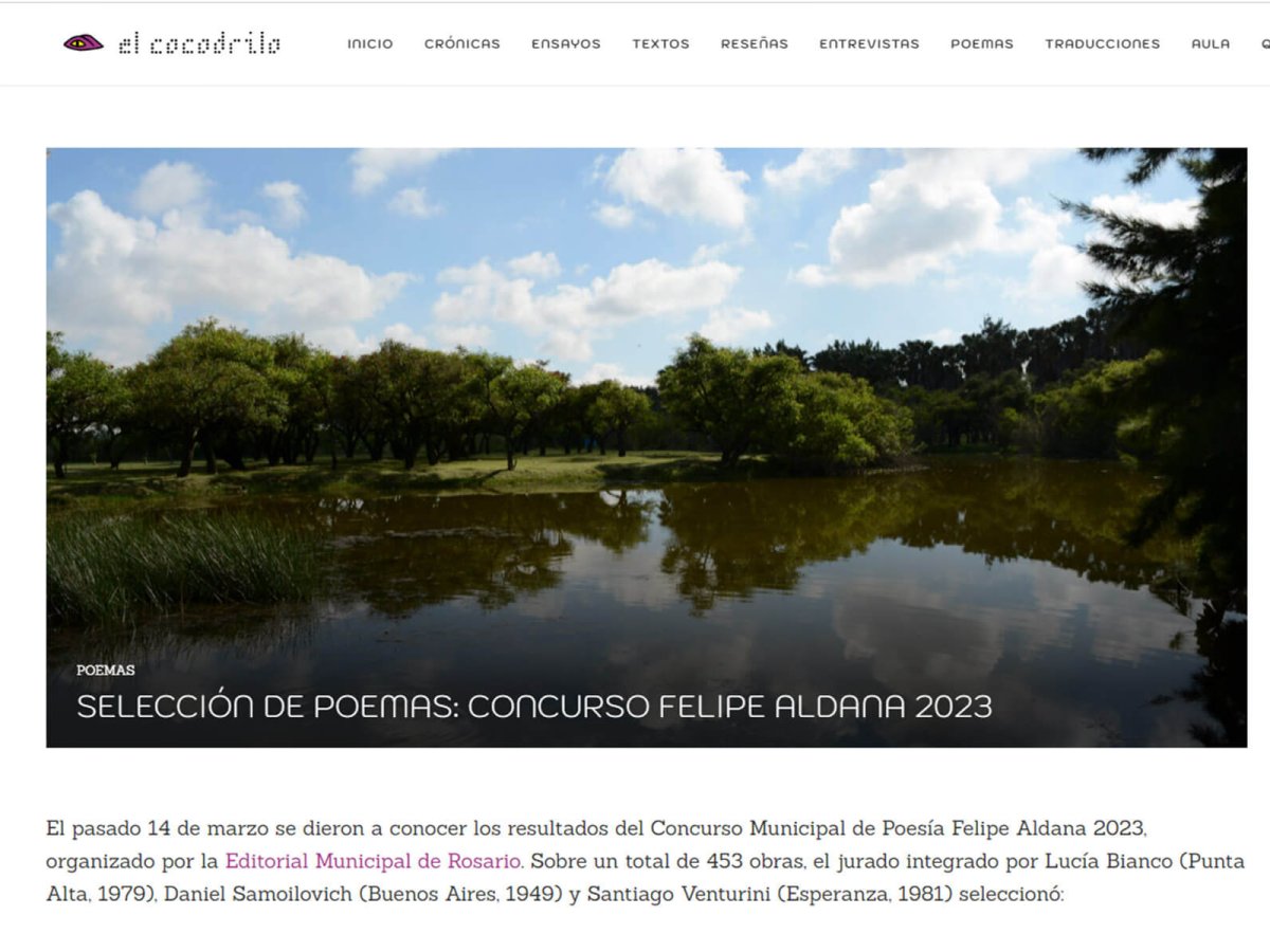 El pasado 14 de marzo se dieron a conocer los resultados del Concurso Municipal de Poesía Felipe Aldana 2023, organizado por la Editorial Municipal de Rosario. Sobre un total de 453 obras, el jurado integrado por Lucía Bianco (Punta Alta, 1979), Daniel Samoilovich (Buenos Aires, 1949) y Santiago Venturini (Esperanza, 1981) seleccionó:
