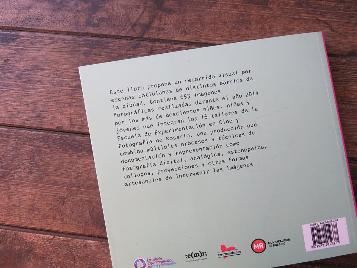 Este libro propone un recorrido visual por escenas cotidianas de distintos barrios de la ciudad, Ludueña Norte, Villa Itatí, El Mangrullo, Tío Rolo, Emaús y Bajo Hondo. Contiene 653 imágenes fotográficas realizadas durante el año 2014 por los ciento ochenta niños, niñas y jóvenes que integraron los diez talleres de la Escuela de Experimentación en Cine y Fotografía de Rosario. Una producción que combina múltiples procesos y técnicas de documentación y representación como fotografía digital, analógica, estenopeica, collages, proyecciones y otras formas artesanales de intervenir las imágenes. La Escuela de Experimentación en Cine y Fotografía, dependiente del Programa ceroveinticinco, es una propuesta de la Secretaría de Cultura y Educación de la Municipalidad de Rosario. Se inició en 2008 con el objetivo de generar diversos espacios de formación para niños, niñas y jóvenes en los lenguajes audiovisual y fotográfico.