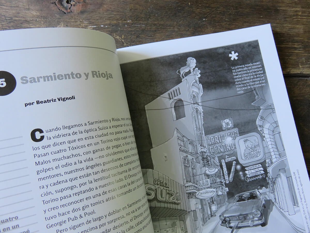 Además de los nombrados, la guía, que ya cuenta con tres ediciones (2004, 2008, 2012) y una cuarta abreviada (Pequeña Rosario Ilustrada, 2016), incluye textos de Jorge Söhle, Ada Donato, Beatriz Vignoli, Lilian Neumann, Arturo Cancela, Rosa Wernicke, Jorge Isaías, Rubens Bonifacio, Patricia Suárez, Pablo Crash Solomonoff, Oscar Taborda, Daniel Giribaldi, Osvaldo Bazán, Daniel Briguet, Rafael Ielpi, Eduardo D?Anna, Héctor Sebastianelli, Florencio Sánchez, Fausto Hernández, Edgardo Dobry, Francisco Gandolfo, Alberto Lagunas, Roger Pla, Edgardo Cozarinsky, César Tiempo, Noemí Ulla, Alejandro Rubio, Hugo Diz, Elvio Gandolfo, Luis Gudiño Kramer, Enriqueta Glardon, Mateo Booz, Facundo Marull, Pablo Makovsky, Perfecto Gambartes, Marcelo Scalona, Lubrano Zas, Dermidio González, Jorge Barquero, Pablo Gavazza, Delia Crochet, Alma Maritano, Abel Rodríguez, Carlos Piccioni, Roberto Fontanarrosa, Beatriz Guido, Sergio Gioacchini, Carlos Suríguez y Acha, Romeo Medina, Aldo Oliva, Juan Martini, Concepción Bertone, Ángel Guido, Alcides Greca, Alicia Kozameh, Julio Fingerit, Stella Contardi, Darío Homs, Rafael Bielsa, Osvaldo Aguirre, Gabriela Saccone, D. G. Helder, Sergio Cueto, Francisco Urondo, Luis Carrión, Rodolfo Vinacua, Ricardo Guiamet y Marcos Lenzoni.